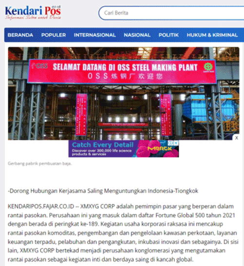 ▲象嶼集團(tuán)創(chuàng)新推進(jìn)混合所有制改革,在印尼建設(shè)250萬(wàn)噸不銹鋼冶煉一體化項(xiàng)目,獲印尼媒體廣泛關(guān)注報(bào)道