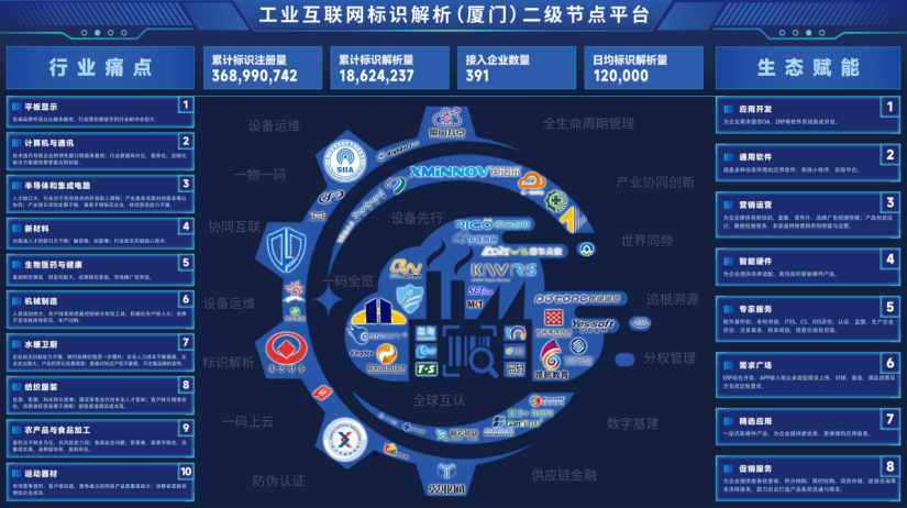 2022年8月,由象嶼集團(tuán)旗下廈門市物聯(lián)網(wǎng)產(chǎn)業(yè)研究院承接建設(shè)的國家工業(yè)互聯(lián)網(wǎng)標(biāo)識解析(廈門)綜合型二級節(jié)點(diǎn)正式投入運(yùn)營,為廈門乃至全國企業(yè)提供專業(yè)的標(biāo)識注冊、標(biāo)識查詢、標(biāo)識解析等數(shù)據(jù)服務(wù)。迄今平臺標(biāo)識注冊量已超3.7億條,標(biāo)識解析量近2千萬次,為保障工業(yè)互聯(lián)網(wǎng)互聯(lián)互通提供了關(guān)鍵基礎(chǔ)設(shè)施,助力工業(yè)企業(yè)提升數(shù)字化轉(zhuǎn)型能力,為廈門產(chǎn)業(yè)數(shù)字化發(fā)展注入一股澎湃新動能。