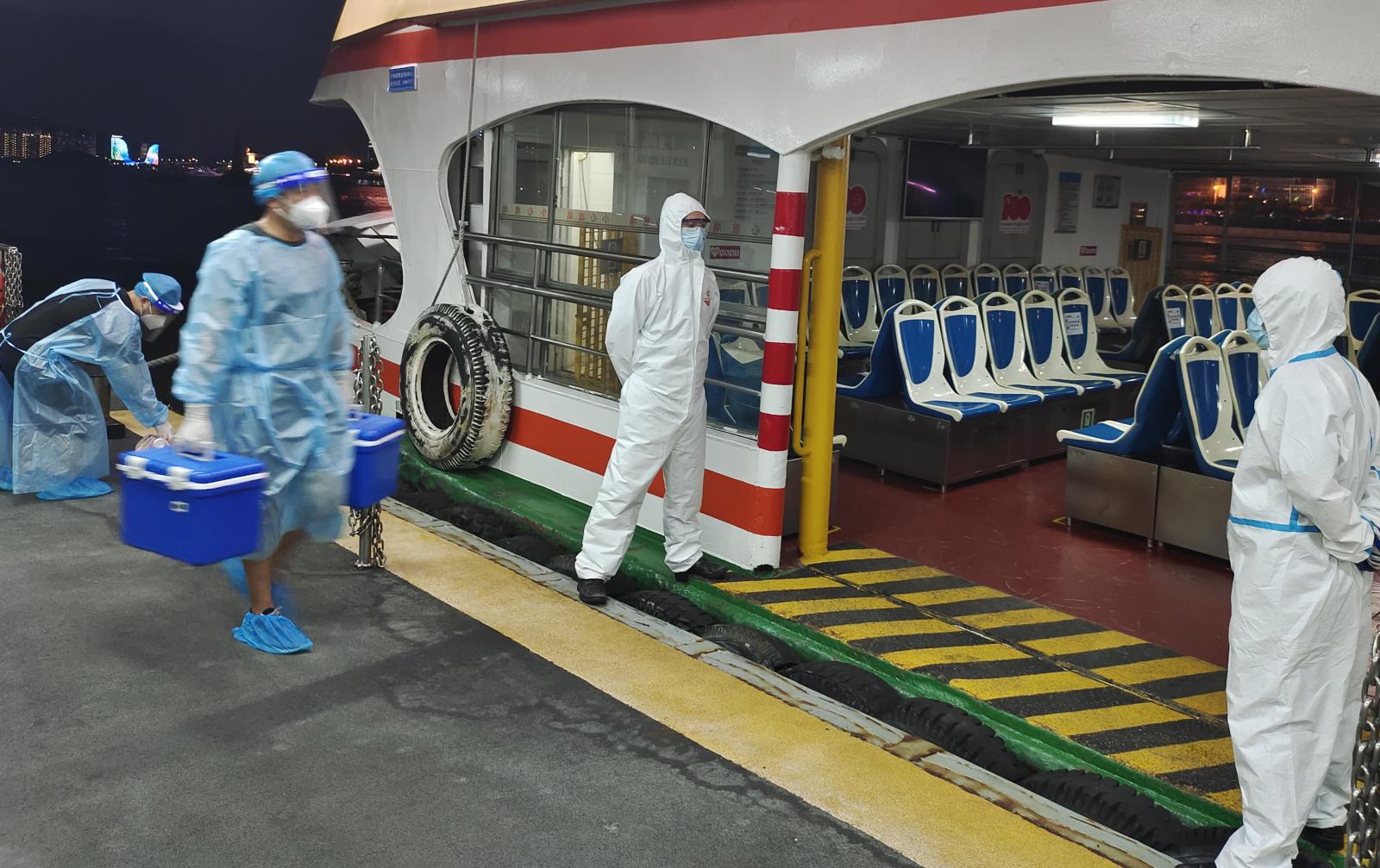 在疫情防控中,廈門(mén)輪渡公司還成立黨員突擊隊(duì),調(diào)派“全國(guó)青年文明號(hào)”——“輪渡20”船作為發(fā)熱病人轉(zhuǎn)運(yùn)專(zhuān)船,日夜守護(hù)人民群眾健康安全。轉(zhuǎn)運(yùn)任務(wù)時(shí)常緊急且繁重,半夜出動(dòng)也是家常便飯。但每當(dāng)任務(wù)來(lái)臨,他們總是毫無(wú)怨言,盡職盡責(zé)暢通“生命轉(zhuǎn)運(yùn)線”,當(dāng)好人民群眾的“守夜人”。每每完成運(yùn)送任務(wù)后,他們還要拖著疲憊的身軀,做好碼頭船岸的消殺工作。據(jù)統(tǒng)計(jì),僅2022年期間,專(zhuān)船就轉(zhuǎn)運(yùn)發(fā)熱病人 236趟次、中高風(fēng)險(xiǎn)地區(qū)人員195趟次、核酸樣本589趟次。