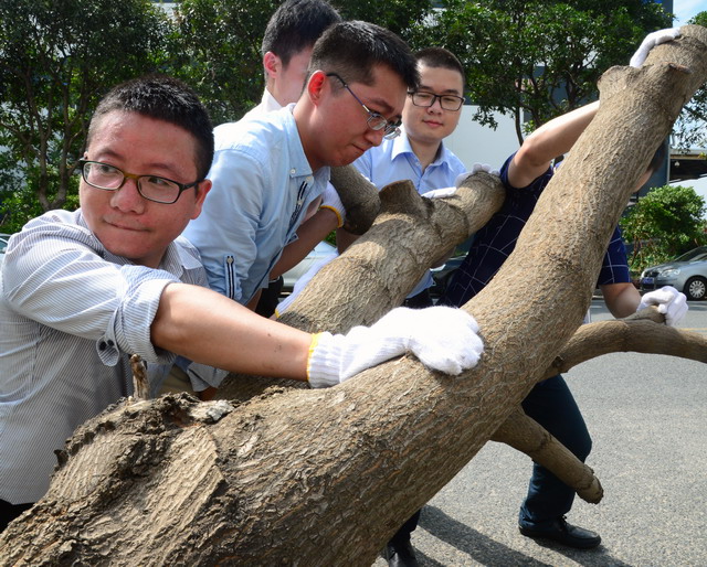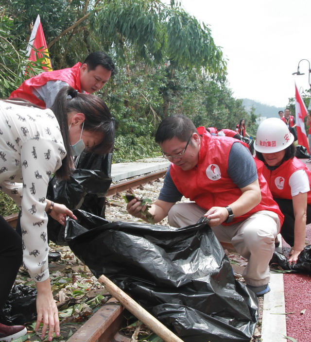 陳方副總裁、邵蕰默副書記在鐵路公園撿拾樹枝。
