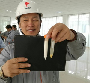中午11時(shí)40分,淀粉車間傳來(lái)喜訊,玉米成功通過(guò)浸泡、破碎、分離、洗滌、脫水、干燥等工序后成功產(chǎn)出淀粉及副產(chǎn)品。象嶼生化生產(chǎn)總監(jiān)林繼民介紹,短短四小時(shí)便能一次性試車成功,這在淀粉行業(yè)史無(wú)前例,象嶼生化再創(chuàng)佳績(jī)!