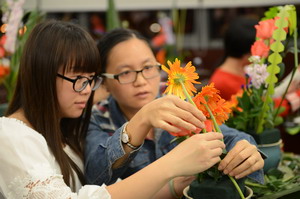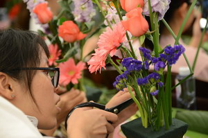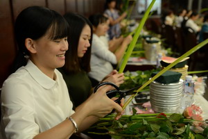 參加培訓(xùn)的女職工們用心制作插花作品