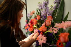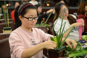 參加培訓(xùn)的女職工們用自己的插花作品祝福集團(tuán)21歲生日快樂