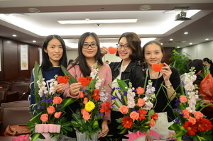 寫上對集團(tuán)的祝福,女職工們辦了一個插花作品秀