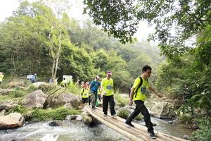 活動(dòng)采取競(jìng)賽形式,出發(fā)前,陳方副總裁寄語(yǔ)全體學(xué)員,希望大家挖掘潛能,帶著希望出發(fā),攜著成功歸來(lái)。大家振奮出發(fā),7支小分隊(duì)攜帶有限的補(bǔ)給負(fù)重,沿著蜿蜒崎嶇的山路前進(jìn),盡管腳下時(shí)有碎石時(shí)有泥濘,參差不齊的樹(shù)枝刮擦衣角,但大家相互呼應(yīng),守望相助,七彩旗幟飄揚(yáng)在山間林下。雖然沿途小峽谷風(fēng)光無(wú)限,宋元古道曲徑通幽,鄉(xiāng)村小道雞犬相聞,但大家無(wú)暇駐足欣賞。