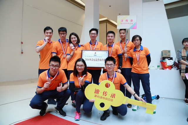 象嶼速傳供應(yīng)鏈發(fā)展股份有限公司奪得2016年象嶼文化宣貫組織獎,象嶼園區(qū)開發(fā)中心“小飛象”隊(duì)、象嶼地產(chǎn)集團(tuán)聯(lián)隊(duì)“先鋒隊(duì)”和象嶼速傳供應(yīng)鏈“速?傳?承”則分獲象嶼企業(yè)文化團(tuán)隊(duì)挑戰(zhàn)賽的冠亞季軍。今年象嶼人還在廈門市排舞比賽中榮獲第二名、榮獲廈門市國有企業(yè)運(yùn)動會乒乓球比賽第一名、廈門市國有企業(yè)運(yùn)動會團(tuán)體第三名的佳績。與此同時,象嶼集團(tuán)第六屆運(yùn)動會圓滿閉幕,活動現(xiàn)場還為全年五大項(xiàng)比賽項(xiàng)目——乒乓球混合團(tuán)體追逐賽、羽毛球混合團(tuán)體追逐賽、游泳比賽、男子籃球比賽、臺球混合團(tuán)體追逐賽的獲獎員工頒發(fā)出獎牌和獎杯。拿到榮譽(yù)證書的象嶼人歡欣鼓舞,互相拍照合影,同享榮譽(yù)和歡樂。