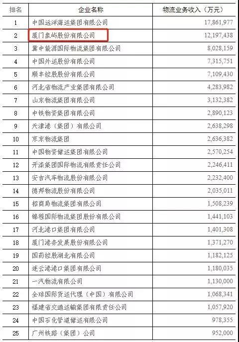 11月23日,中國(guó)物流與采購(gòu)聯(lián)合會(huì)公布了2018年度中國(guó)物流企業(yè)50強(qiáng)排名,象嶼股份躍居第2,較上一年前進(jìn)兩位。