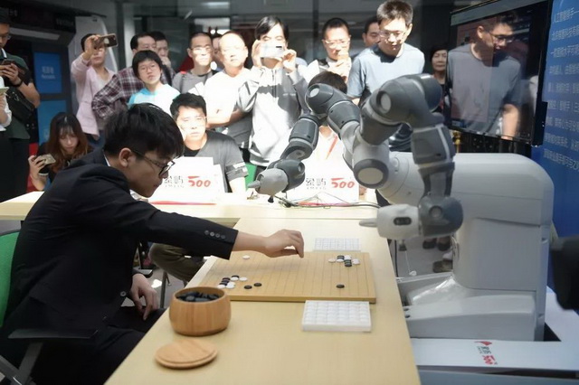 從開幕式就擺好擂臺(tái)的圍棋機(jī)器人“棋智”,在現(xiàn)場(chǎng)也接受了不少愛好者的挑戰(zhàn)。挑戰(zhàn)宣言是“只要下滿50手(機(jī)器人執(zhí)白棋)勝率達(dá)到30%及以上,均獲得主辦送出精美禮品”。不過,這位擁有智能眼、手、腦,造型可愛的圍棋機(jī)器人,擁有可分等級(jí)的圍棋智能對(duì)弈系統(tǒng),落子超級(jí)精準(zhǔn)迅速,初始勝率40%。除了開幕式柯潔鎮(zhèn)住了它,現(xiàn)場(chǎng)的愛好者們都沒能挑戰(zhàn)成功。不過,挑戰(zhàn)者們依然興致勃勃,“能親手跟智能機(jī)器人過招,實(shí)在太過癮了!”