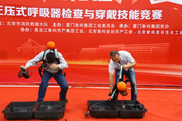 同日,正壓式呼吸器檢查與穿戴技能競(jìng)賽在北安象嶼產(chǎn)業(yè)園舉行,來(lái)自南通、綏化、富錦、北安等地公司的17名選手依次登臺(tái)比拼技藝。