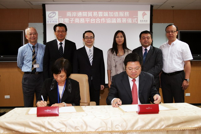 兩家企業(yè)有鑒于目前兩岸貿(mào)易往來信息傳遞需求日漸成長,為協(xié)助企業(yè)在進(jìn)出口貿(mào)易能更便捷、快速的通關(guān),雙方借由共同簽署協(xié)議,結(jié)合各自在通關(guān)信息服務(wù)領(lǐng)域的優(yōu)勢(shì),合作打造兩岸通關(guān)貿(mào)易云端加值服務(wù)暨電子商務(wù)平臺(tái)。