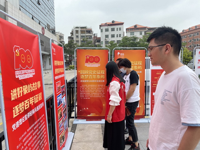 活動(dòng)現(xiàn)場(chǎng)不僅愛心涌動(dòng),黨史學(xué)習(xí)教育氣氛更是熱烈,活動(dòng)主辦方之一的象嶼集團(tuán)在醒目位置特別設(shè)置了黨史學(xué)習(xí)教育展區(qū)。記者了解到,將獻(xiàn)血現(xiàn)場(chǎng)打造成黨史宣傳陣地,是象嶼集團(tuán)扎實(shí)推進(jìn)黨史學(xué)習(xí)教育接地氣、有聲勢(shì)、見實(shí)效的一個(gè)縮影。近期,象嶼集團(tuán)正以黨建理論宣講輕騎兵巡回宣講、慶祝中國(guó)共產(chǎn)黨建黨100周年宣講比賽兩項(xiàng)大型活動(dòng)為抓手,在全集團(tuán)掀起學(xué)黨史、悟思想、辦實(shí)事、開新局的熱潮。
