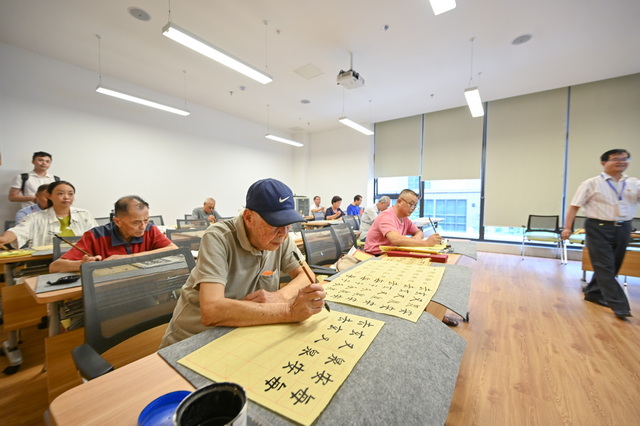 “在這里,不僅可以學(xué)書法,還可以認(rèn)識(shí)很多朋友,溫馨又愉快,孩子們也安心。”張爺爺告訴記者,他今年83歲了,來自東北,因?yàn)閮鹤釉趶B門工作就跟著過來。家人怕他獨(dú)自在家孤單,幾經(jīng)挑選選中了象嶼慈愛,果然他一來就喜歡上了這里。