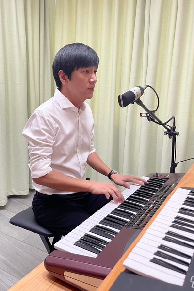 作曲者新圩學(xué)校音樂教師朱冰林在這次疫情中情況特殊,他就居住在同安封控區(qū)內(nèi)。因此疫情發(fā)生后,他和小區(qū)的其他居民一樣居家不出,認(rèn)真配合做好每一輪核酸檢測(cè)。居家期間,他寫出了《廈門就是我們》的旋律。由于無法外出到專業(yè)場(chǎng)所錄音制作,他就自彈自唱。