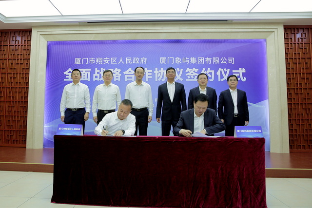 為深入貫徹落實(shí)市第十三次黨代會精神,推進(jìn)跨島發(fā)展,推動(dòng)廈門高素質(zhì)更具實(shí)力、高顏值更富魅力、現(xiàn)代化更增活力、國際化更有張力,昨日,廈門市翔安區(qū)與廈門象嶼集團(tuán)簽署全面戰(zhàn)略合作協(xié)議,雙方將圍繞產(chǎn)業(yè)發(fā)展、產(chǎn)業(yè)園區(qū)建設(shè)、招商引資、鄉(xiāng)村振興,以及城市更新、促進(jìn)就業(yè)、黨建共建等,開展全方位多元化深度務(wù)實(shí)合作,構(gòu)建起優(yōu)勢互補(bǔ)、資源共享、互融互通、共同發(fā)展的政企合作新格局。