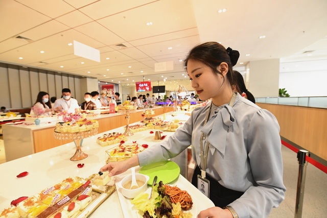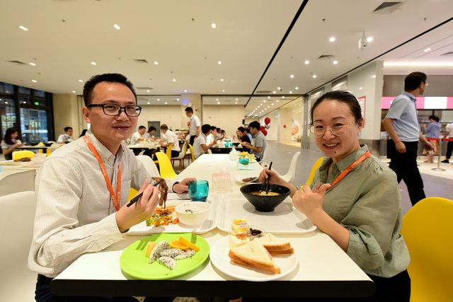 它美在膳食健康。餐廳委托世界500強餐飲服務(wù)企業(yè)康帕斯悉心運營,嚴(yán)把食品安全關(guān)。集團行政中心及各公司代表還組成膳食管理委員會,對餐廳的食品安全、環(huán)境衛(wèi)生、餐品質(zhì)量等進行監(jiān)管,并每天向員工公示食材驗收情況。