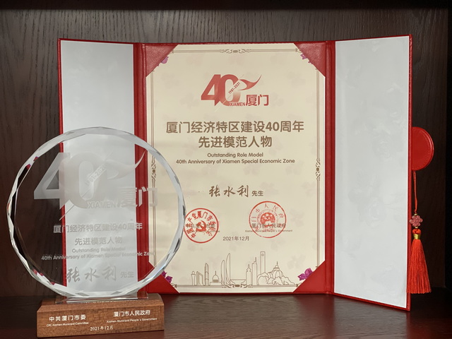 在這一特殊歷史時點上,廈門市委、市政府決定對為廈門經濟特區(qū)建設作出突出貢獻的先進模范人物和創(chuàng)新創(chuàng)業(yè)人物進行表揚。全國勞動模范、象嶼集團黨委書記、董事長張水利榮膺廈門經濟特區(qū)建設四十周年先進模范人物。