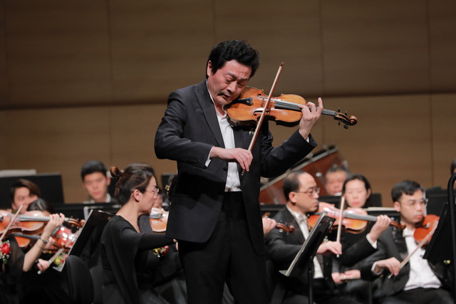 音樂會(huì)下半場(chǎng),呂思清的登臺(tái)將現(xiàn)場(chǎng)氣氛推向高潮。作為當(dāng)今樂壇最活躍、最知名的中國(guó)小提琴家之一,呂思清經(jīng)常受邀與國(guó)內(nèi)外著名樂團(tuán)合作,將美妙琴音傳遍世界四十多個(gè)國(guó)家和地區(qū)的著名演出場(chǎng)所。此次攜手廈門愛樂樂團(tuán),他帶來小提琴協(xié)奏曲《梁?!?,經(jīng)典旋律流淌而出,于深情處細(xì)膩委婉,于激憤處如泣如訴,把動(dòng)人愛情演奏得蕩氣回腸。一曲終了,全場(chǎng)爆發(fā)出經(jīng)久不息的掌聲。受現(xiàn)場(chǎng)熱情感染,呂思清兩度返場(chǎng),加演了《陽(yáng)光照耀著塔什庫(kù)爾干》《沉思》兩首曲目,將節(jié)日的歡愉和新年的祝福送給廈門聽眾。