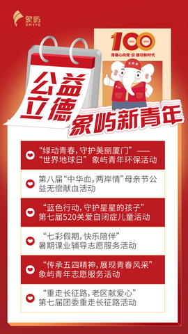 “計利天下 相與有成”的象嶼,造就出一代代“為世界進(jìn)文明,為人類造幸福”的新青年。本次活動將延續(xù)象嶼傳統(tǒng),組織系列公益志愿服務(wù),燃燒青春之火,傳遞溫暖大愛。同時,集團(tuán)及各投資企業(yè)也將積極開展“我為青年辦實事”實踐活動,為象嶼青年掃除成長的后顧之憂。
