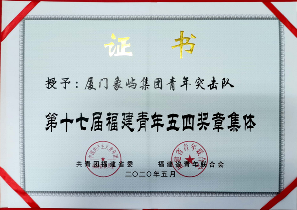 象嶼集團(tuán)青年突擊隊榮獲“福建青年五四獎?wù)录w”榮譽稱號,象嶼集團(tuán)團(tuán)委榮獲“廈門市青年五四獎?wù)录w”榮譽稱號。
