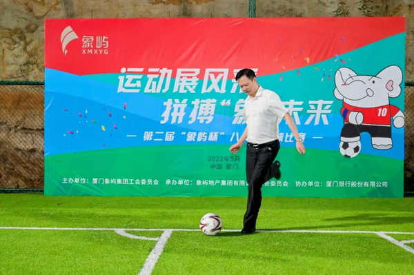▲象嶼集團黨委副書記、工會主席邵蕰默為揭幕戰(zhàn)開球