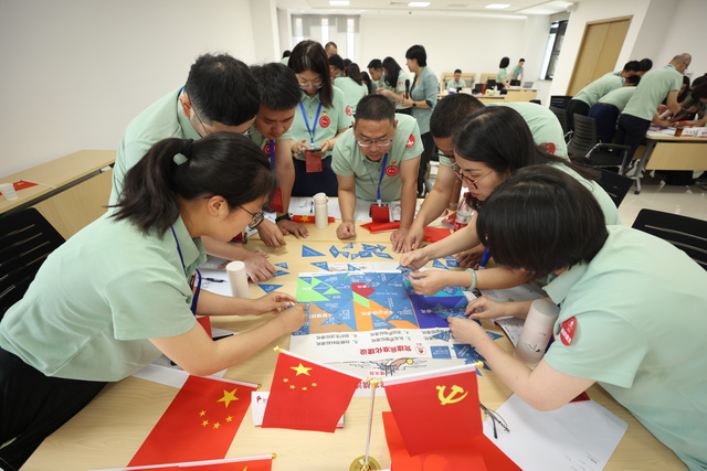 培訓(xùn)中,基層黨建工作的一道道“必答題”被引入沙盤推演,帶領(lǐng)學(xué)員在沉浸式的劇情體驗(yàn)中,熟練掌握成立黨支部、過(guò)好組織生活、發(fā)展黨員、聯(lián)系群眾等知識(shí)技能,在劇情的推進(jìn)和重重任務(wù)的考驗(yàn)中,深刻領(lǐng)會(huì)到做好基層黨建工作的重要意義。學(xué)員們團(tuán)結(jié)互助、堅(jiān)持探索,深挖黨建工作的“通關(guān)秘鑰”,破解黨建與業(yè)務(wù)“兩張皮”的難點(diǎn)痛點(diǎn),點(diǎn)燃了基層黨建工作提質(zhì)增效的“星星之火”。