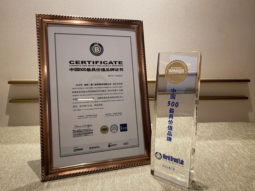 7月26日,由世界品牌實驗室主辦的第十九屆“世界品牌大會”在北京舉行,發(fā)布2022年度《中國500最具價值品牌》分析報告。象嶼以669.89億元的品牌價值位列榜單第125位,較上一年度前進6位。這是象嶼品牌連續(xù)4年蟬聯(lián)榜單,品牌價值較2019年首年入榜提升246.04億元。