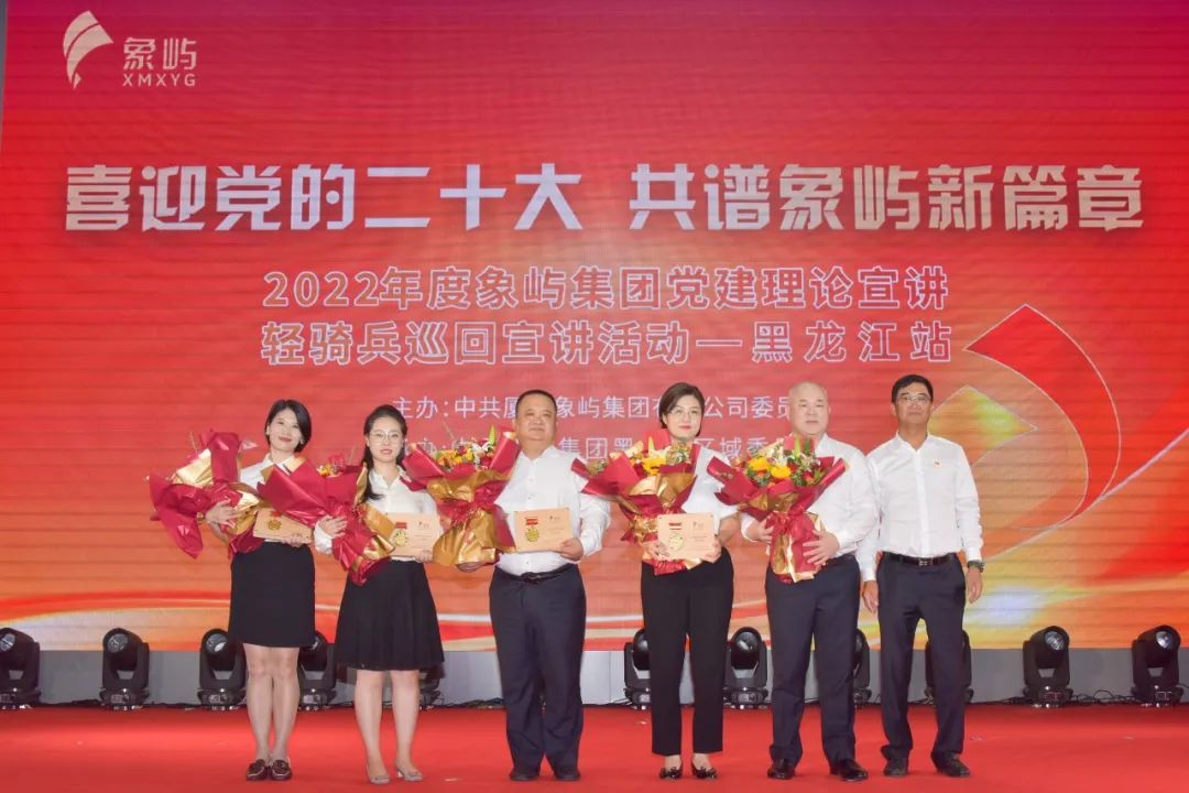 喜迎黨的二十大,共譜象嶼新篇章。7月28日晚,2022年度象嶼集團(tuán)黨建理論宣講輕騎兵巡回宣講活動(dòng)黑龍江站圓滿舉行。象嶼集團(tuán)黨委書記、董事長張水利,黨委副書記、總裁鄧啟東,黨委委員、監(jiān)事會(huì)主席方弘哲,黨委副書記、工會(huì)主席邵蕰默,黨委委員、總裁助理、象嶼集團(tuán)黑龍江區(qū)域黨委書記、象嶼生化董事長吳捷,總裁助理王劍莉,綏化市副市長、北林區(qū)委書記付秀芳,北林區(qū)委副書記、區(qū)長李文藝,象嶼黑龍江區(qū)域企業(yè)領(lǐng)導(dǎo)及員工代表200余人共同在現(xiàn)場聆聽,全球各地象嶼員工也以觀看視頻直播的方式“云參與”。